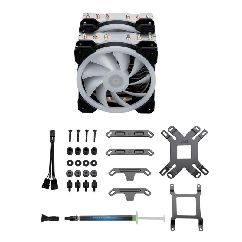 GELID SOLUTIONS Glacier RGB - Twin Tower con 6 Power Heatpipes - 2 Ventole ARGB PWM da 120mm - TPD 220W e più - Staffa di Protezione AM4 - CC-GLACIER-01-A