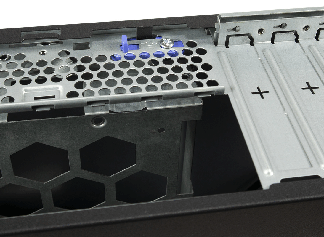 8.3 Litri Ultra-Compatta Custodia Desktop Supporto di alimentazione TFX Slim-DVD con altezza 9,5 mm possibile Spazio di montaggio della ventola 80mm nella parte anteriore Posizionamento orizzontale o verticale Gabbia di montaggio rimovibile per ODD e HDD/SSD Contempra senza vite per slot a 2,5", slim-DVD e PCI Meccanismo di bloccaggio integrato per la copertura abitativa |