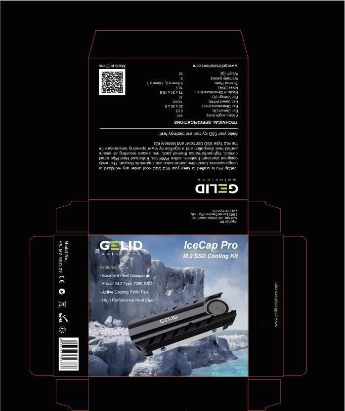 Gelid Solutions Icecap PRO M.2 SSD, adecuado para todos los SSD M.2 tipo 2280, ventilador PWM, 12000 rpm, 20x20x6mm, negro