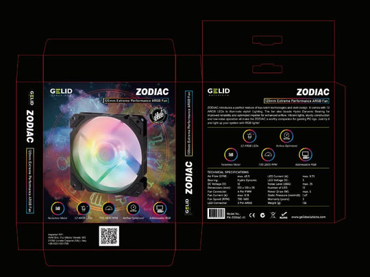 Gelid Solutions Zodiac - 120 mm PWM - hüdrodünaamiline laager - 12 ARGB LED - 1600 RPM - 3 Pin-4 Pin PWM - 120x120x25mm - must