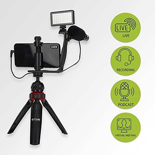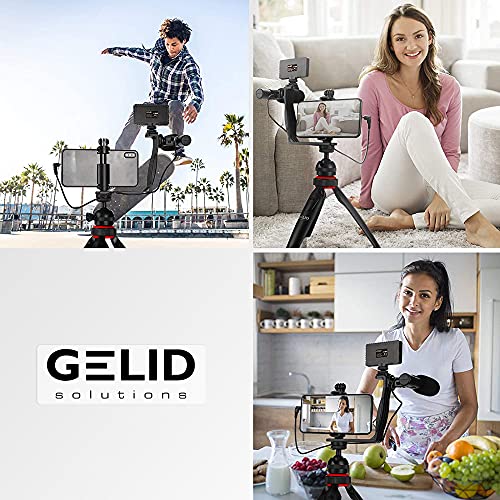 Gelid Solutions OnAir Streaming Mobile Kit - Set Completo per Lo Streaming/Video Mobile - Luce LED Ricaricabile con 3 filtri di Colore - Supporto Universale per Smartphone/Camera – Nero