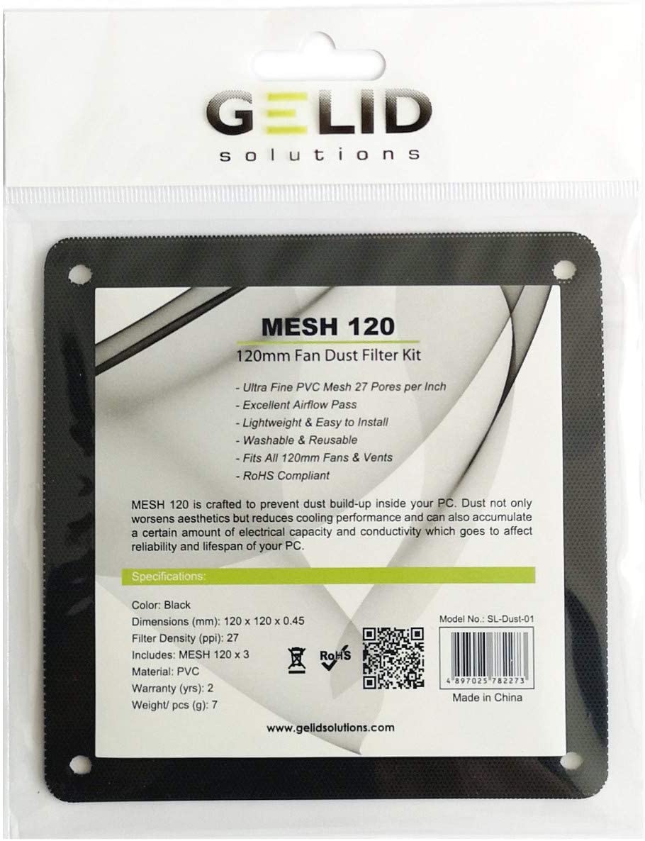 Gelid Solutions Mesh 120 Filtro per PC - Compatible con ventole 120mm - Include: 3X 120mm