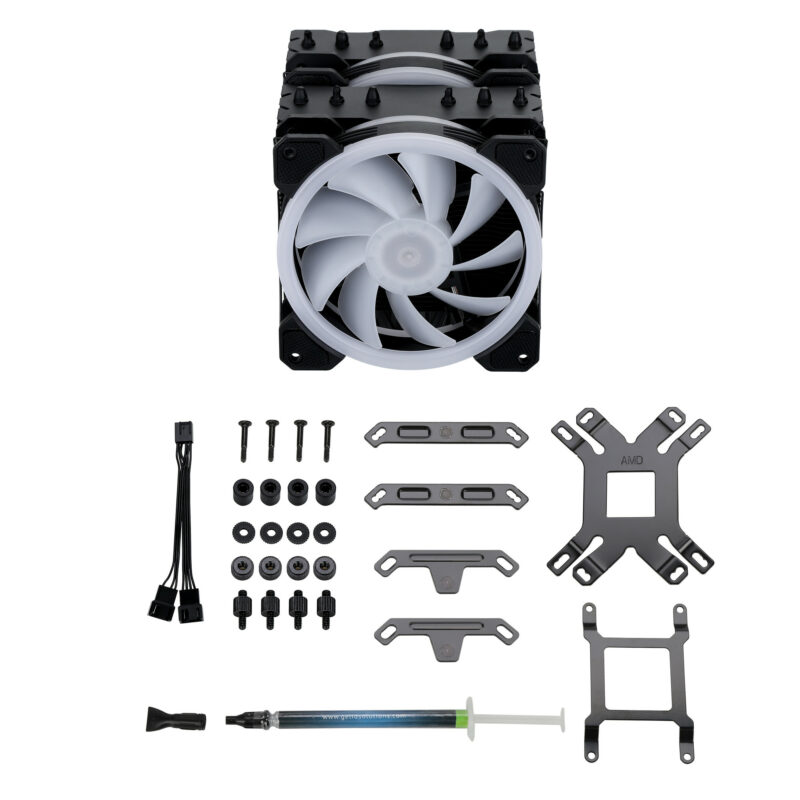GELID SOLUTIONS Glacier Black RGB - Twin Tower con 6 Power Heatpipes - 2 Ventole ARGB PWM da 120mm - TPD 220W e più - Staffa di Protezione AM4 - CC-Glacier-02-A