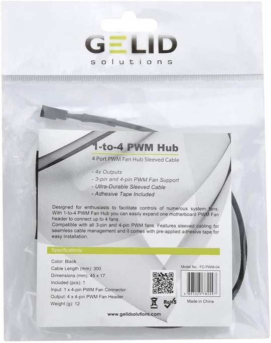Gelid Solutions Hub PWM de 1 a 4, cabo de alimentação do ventilador Adaptador divisor de hub de 4 pinos/3 pinos com divisor PWM 2V 1 a 4 - FC-PWM-04