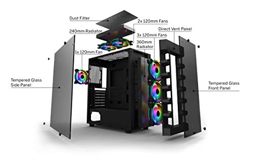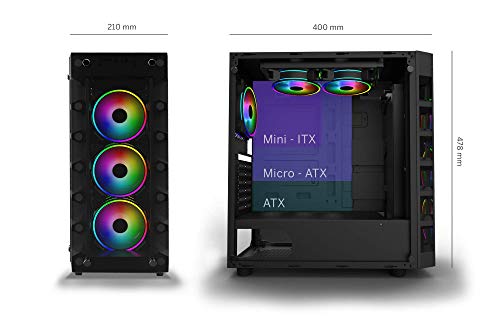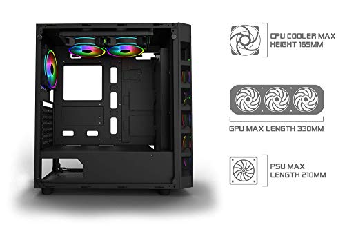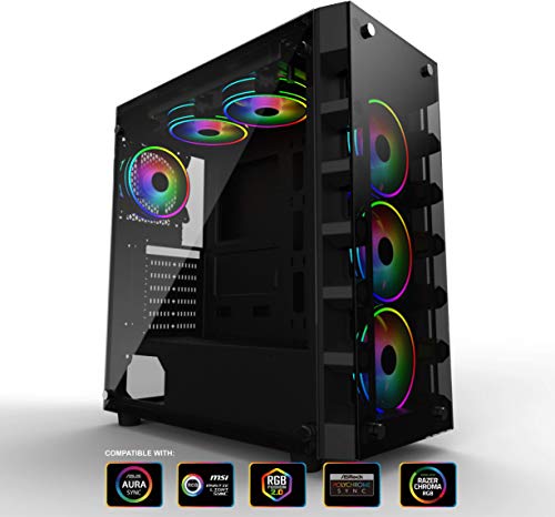 Gelid Solutions Black Diamond Gaming PC case - ATX ITX Mid-Tower, 4 Ventole ARGB, Gestione dei cavi, vetro temprato, porte USB 3.0, nero
