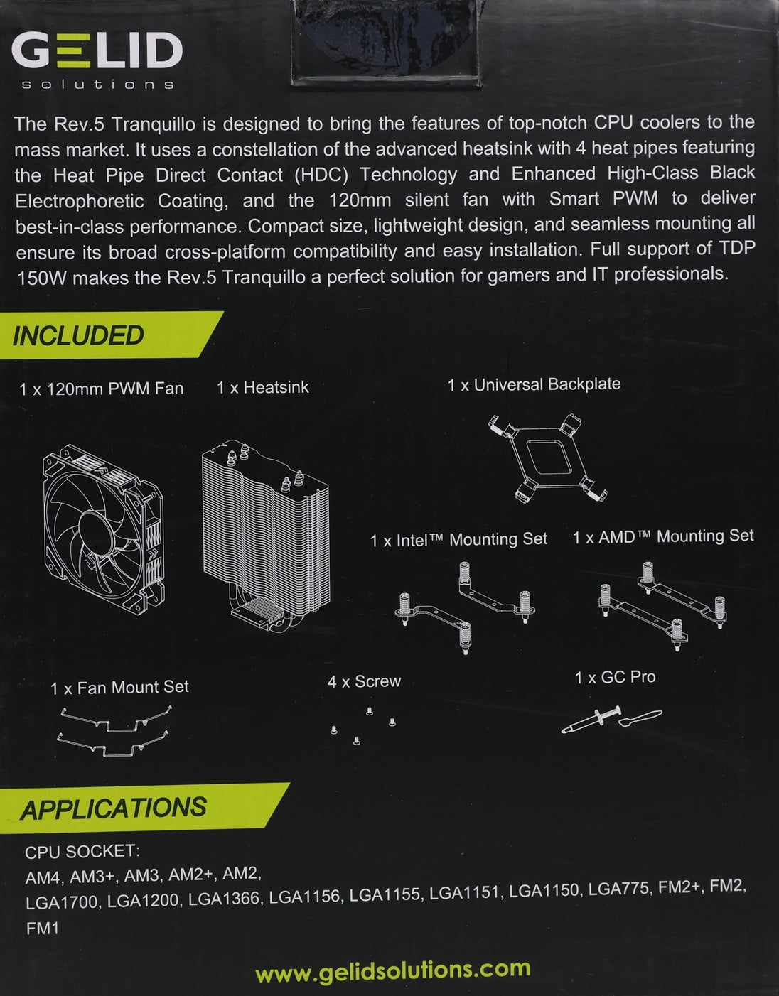 Gelid Çözümleri Paketi Tranquillo 5 ve i3 12100F Tepsi Intel CPU CM8071504651013